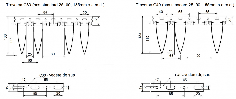 Panourile pot fi livrate de orice lungime, de la 1000 mm la 6000 mm, profile portant (ghidajul) are o lungime standard de 4000 mm.