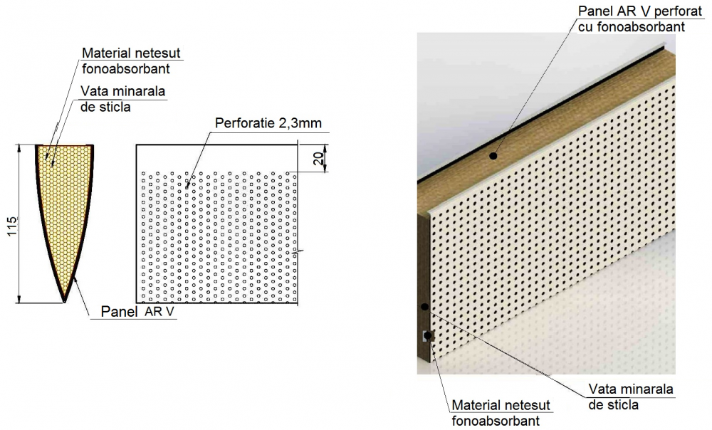 Pentru a asigura un control acustic optim în încăpere, lamelele pot fi perforate. În calitate de funcție standard, lamelele perforate sunt prevăzute cu un material nețesut fonoabsorbant, lipit pe suprafața interioară a lamelei.