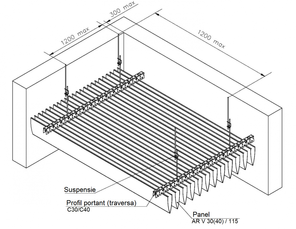 În cazul unei distanțe mari între lamele, pe profilul portant mai pot fi montate și lamele decorative. Sistemul admite utilizarea lămpilor, instalate între lamele, care îasigură cu succes iluminarea.