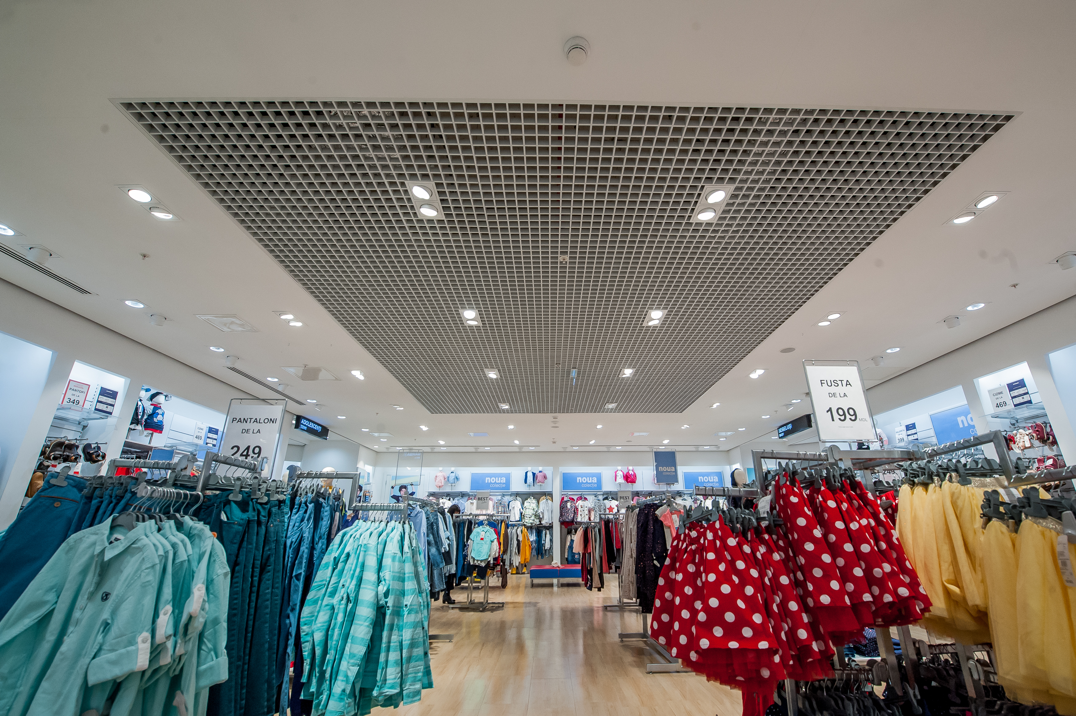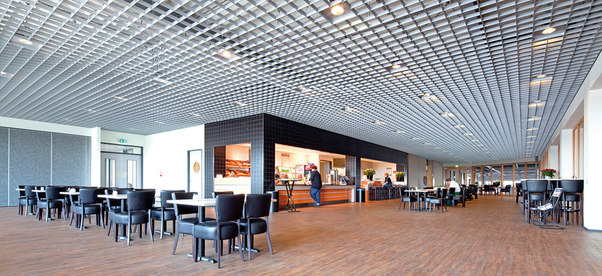 • Design arhitectural - posibilitatea de a combina într-un spațiu (pe același sistem de suspendare) diverse elemente de tavan, prin alternanța casetelor și a grilelor.